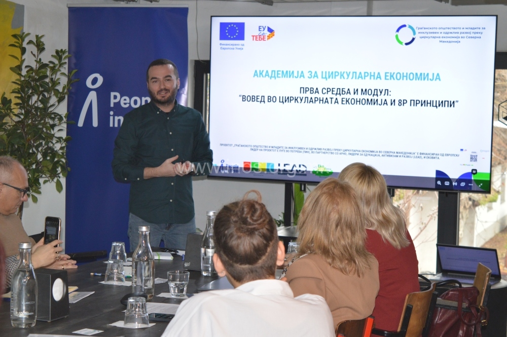 На 23 декември 2024 година, тимот на ИНОС присуствуваше на првата средба од Академијата, која се одржа во Скопје. Средбата започна со воведно запознавање помеѓу избраните организации, менторите и експертите кои ќе бидат дел од процесот во наредните шест месеци. Во рамките на првата обука, беше одржан воведниот модул на тема „Вовед во циркуларната економија и 8Р принципи“, кој го водеше проф. д-р Наташа Даниловска од Економскиот институт при УКИМ. Овој модул претставуваше важен чекор за разбирање на основните концепти на циркуларната економија, како и принципите кои ја водат оваа одржлива практика – Reduce (Намали), Reuse (Повторно искористи), Recycle (Рециклирај), Rethink (Преиспитај) и други. Покрај обуката, средбата овозможи можности за вмрежување, размена на искуства и поставување на темелите за соработка помеѓу учесниците.